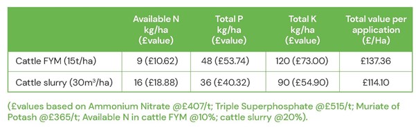 - Use full nutrient value of FYM and slurry to provide significant savings in fertiliser costs for growing crops.